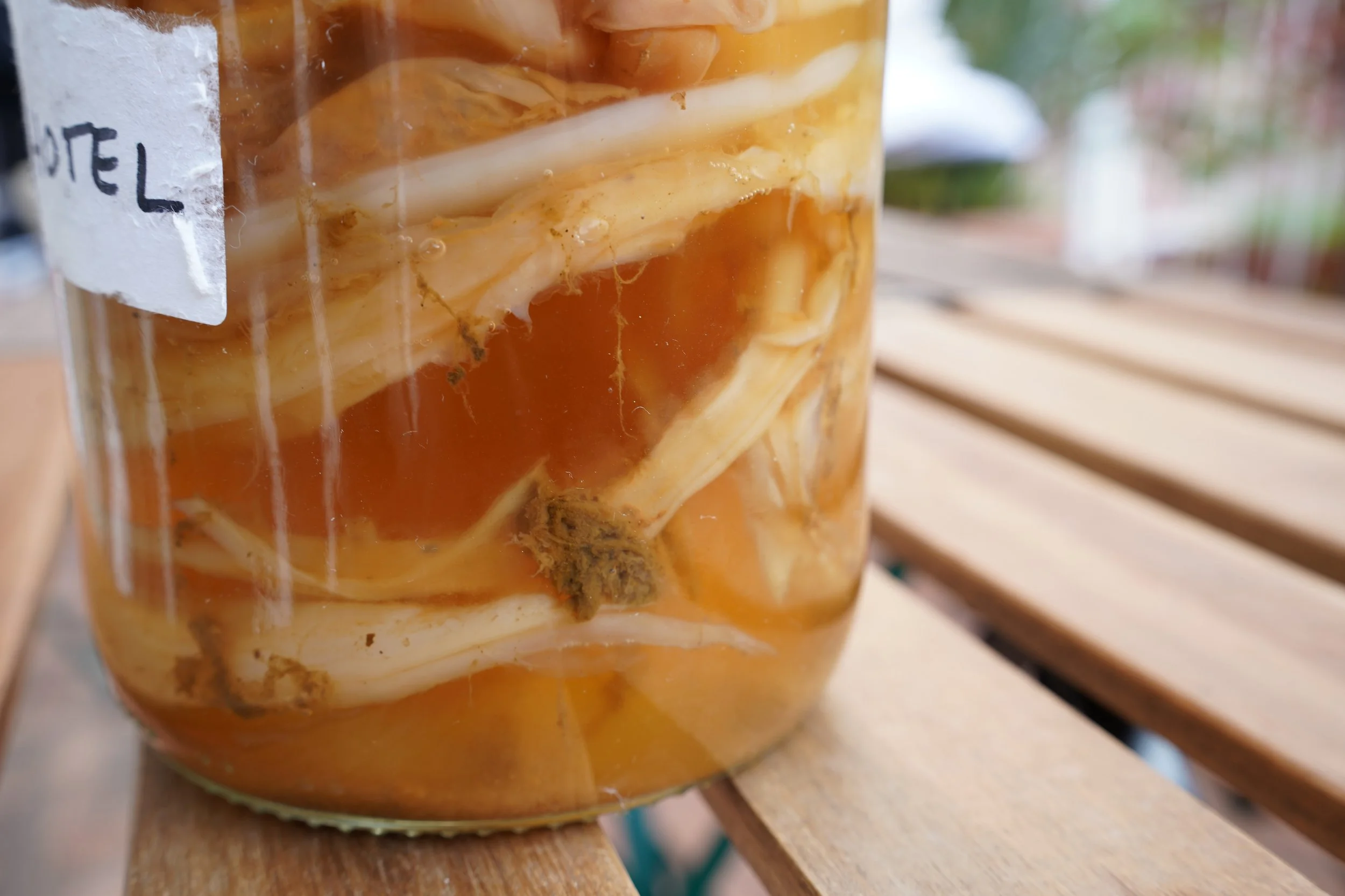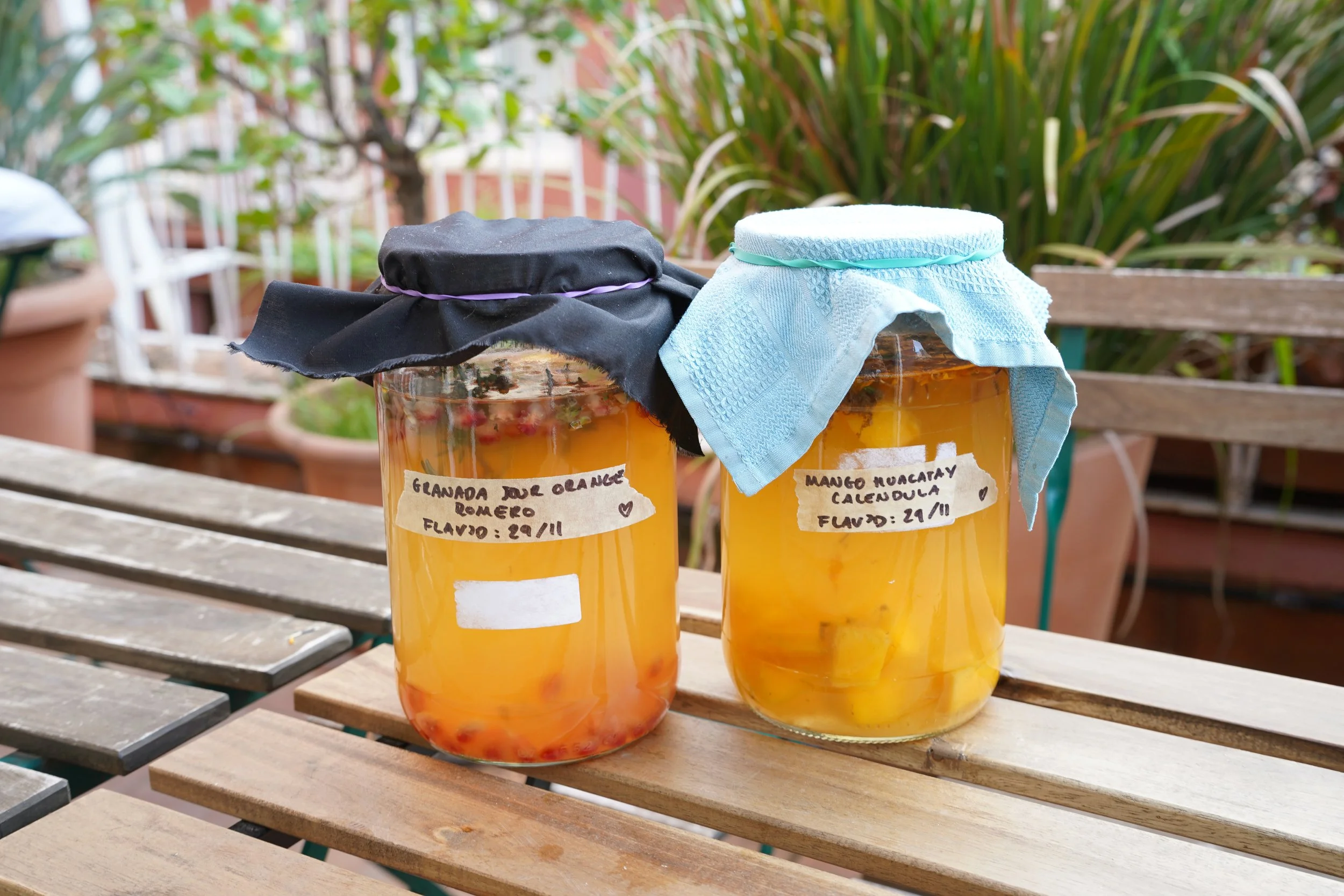Wash your hands, jars, tools, and fruits well. Try to avoid using metal when the fermentation process has started. Make sure to label your jars with what is inside, the stage of the fermentation, and the date!