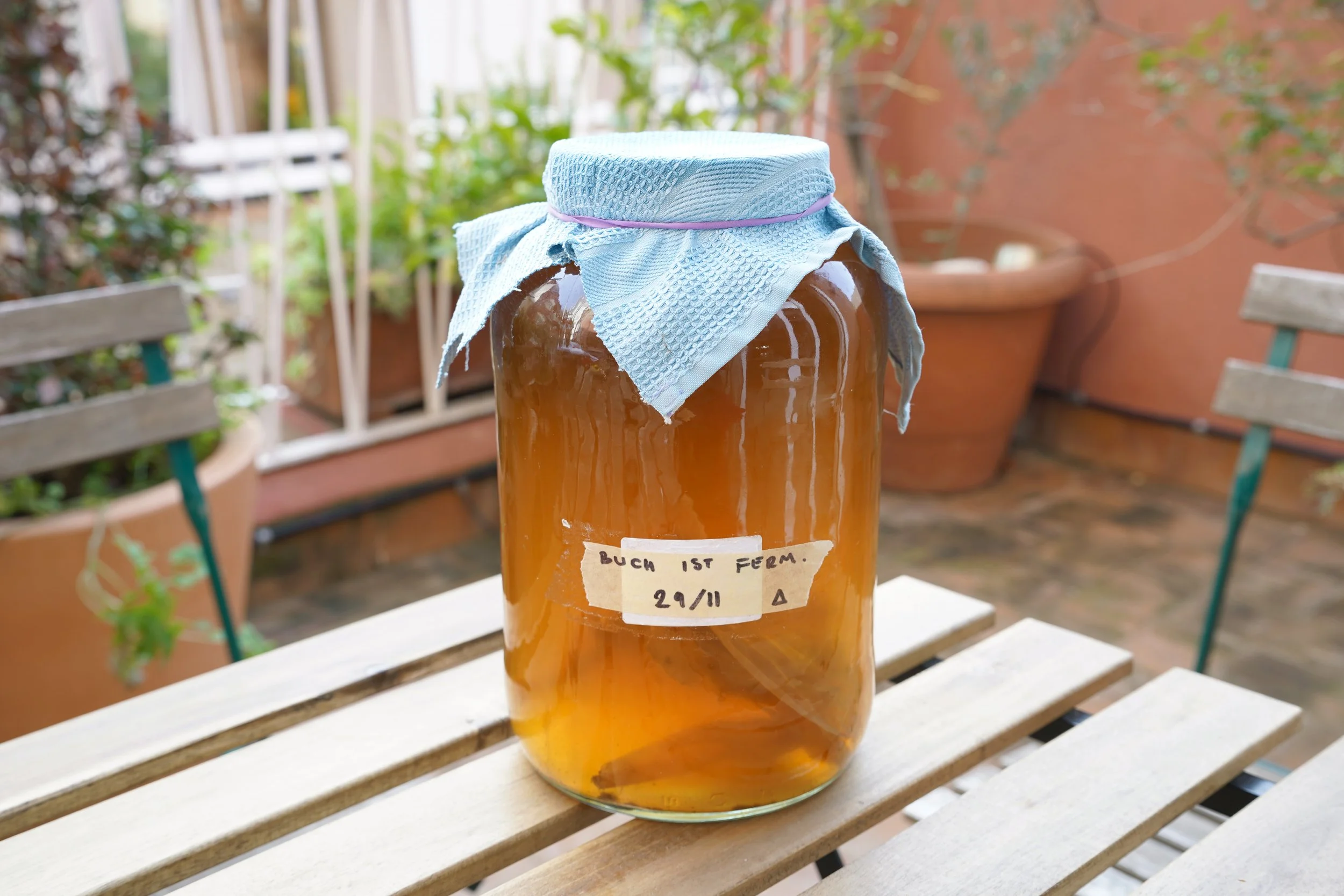 Do not cover the jar with a solid lid! Always use a cloth as kombucha needs oxygen to ferment.